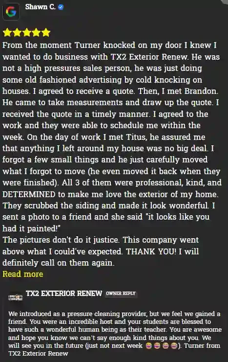 TX2 Exterior Renew provides high-quality pressure washing, soft washing, and exterior surface cleaning for properties across the surrounding Vancouver, WA and Portland, OR area(s). We specialize in restoring driveways, siding, roof cleaning, gutter maintenance, fence and deck cleaning or repair. We bring curb appeal to your property without the need to move. We're committed to top-tier customer service offering free estimates and pre-inspections, customized to your need. Whether residential or commercial, our team takes pride in your property and equipment with reliable cleaning solutions. Licensed, bonded, and insured, TX2 Exterior Renew is prompt, professional, and local.